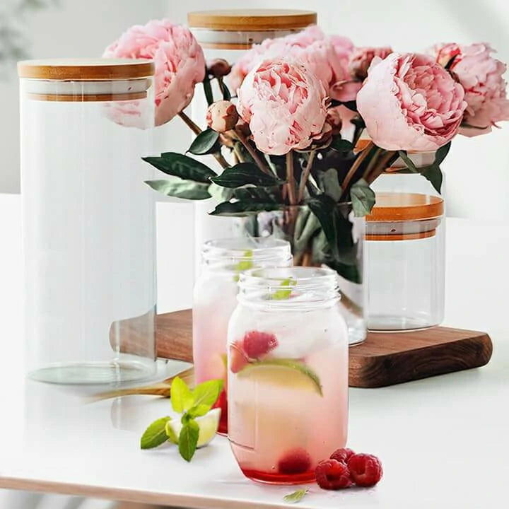 Masthome Airtight Glass Jar Set with Bamboo Lid