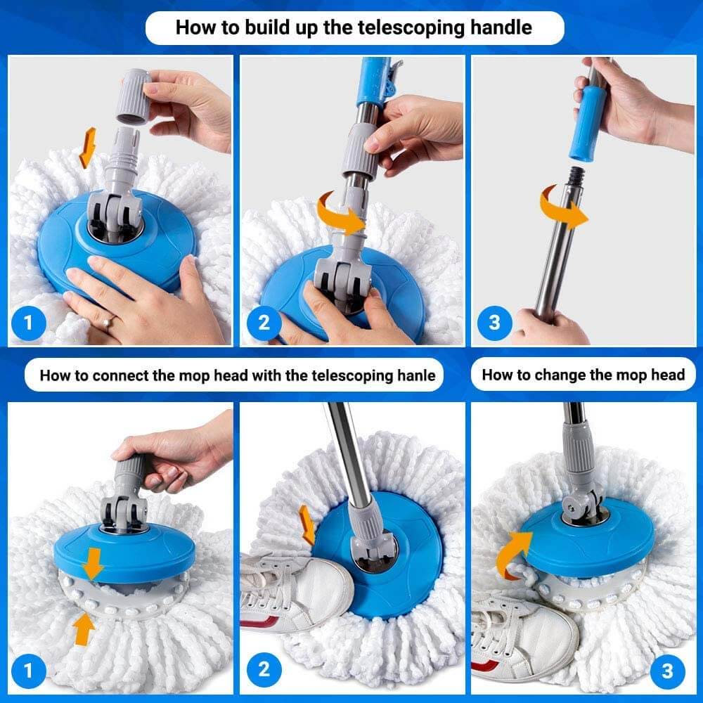 - 360° Rotating Mop Head - The flexible mop head easily reaches under furniture and other hard-to-reach areas, making cleaning easier;