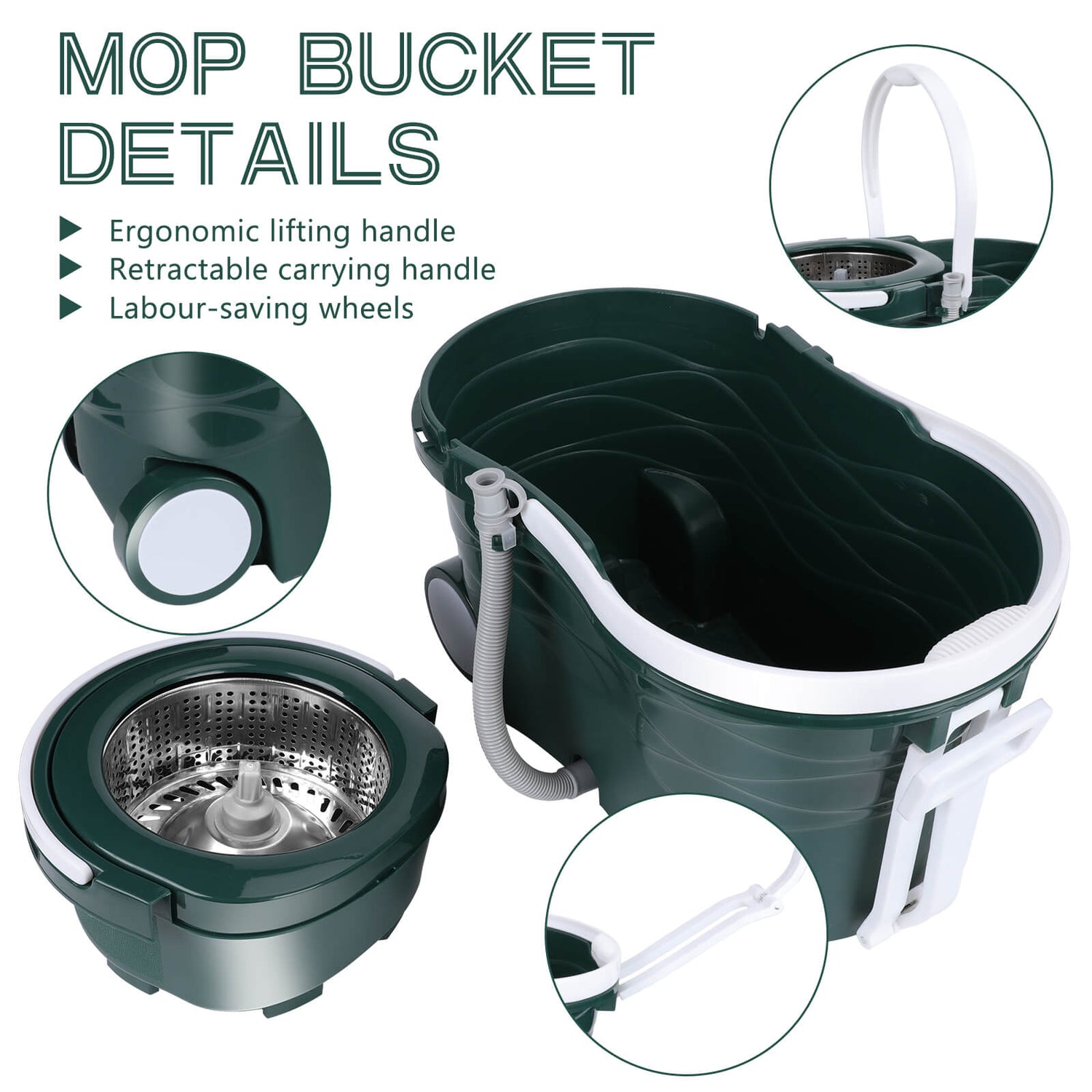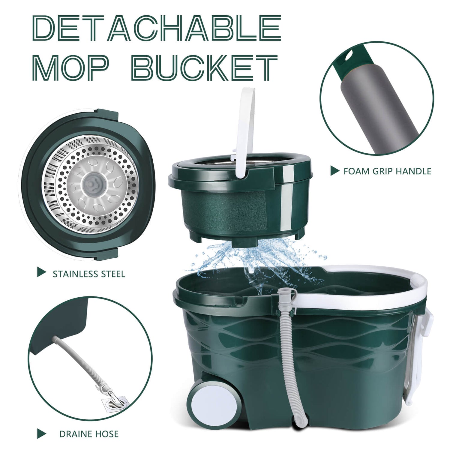 - Dual Spinners - Extra spinners are installed in the cleaning bucket section, which makes the mop clean faster and saves your time;