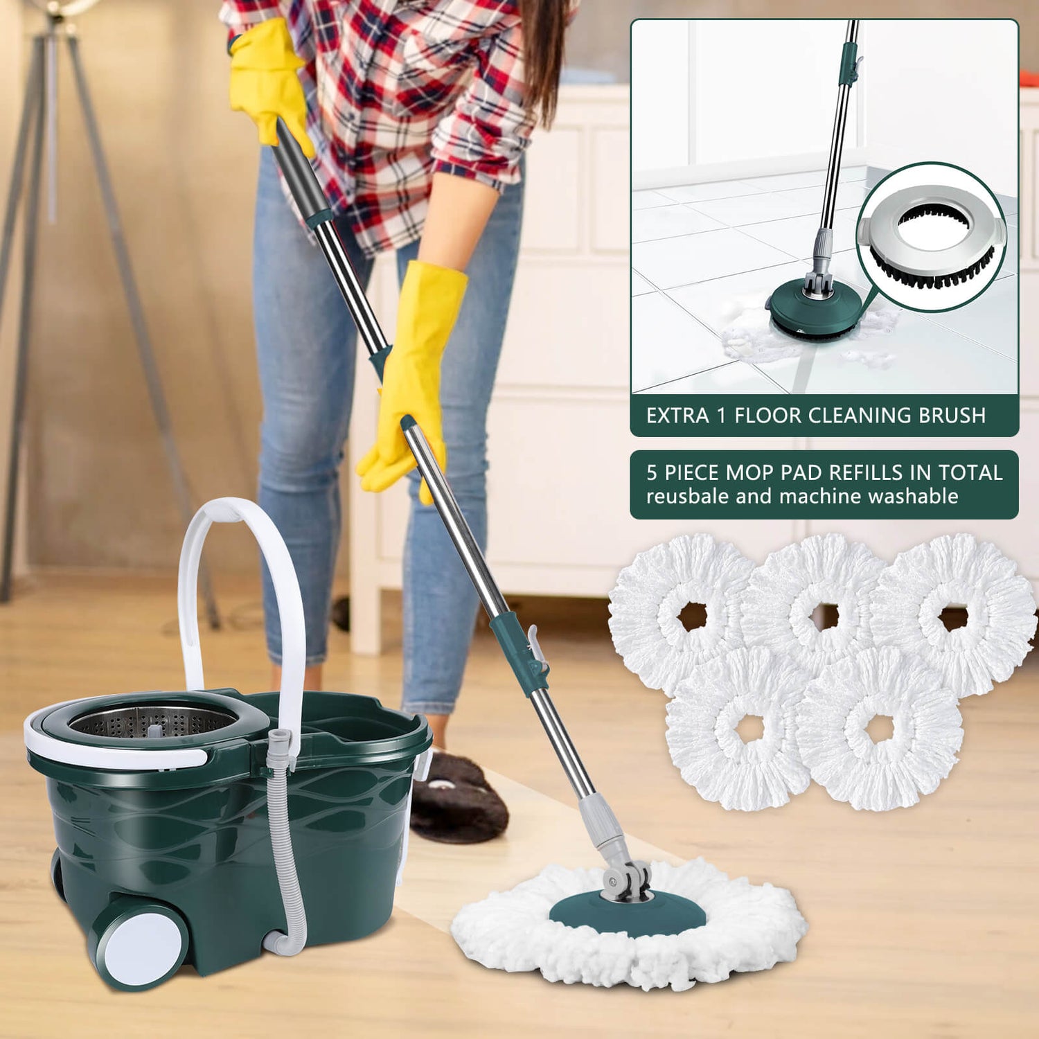 Masthome Easy Wring Spin Mop and Bucket with Wringer Set