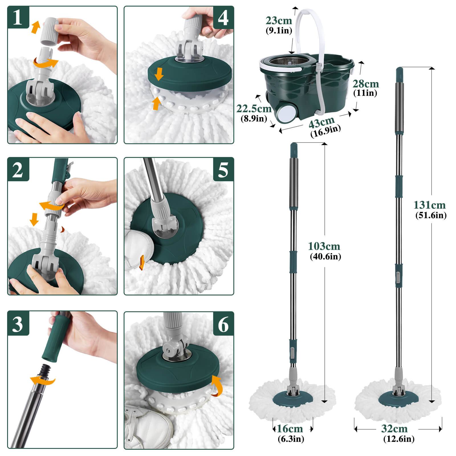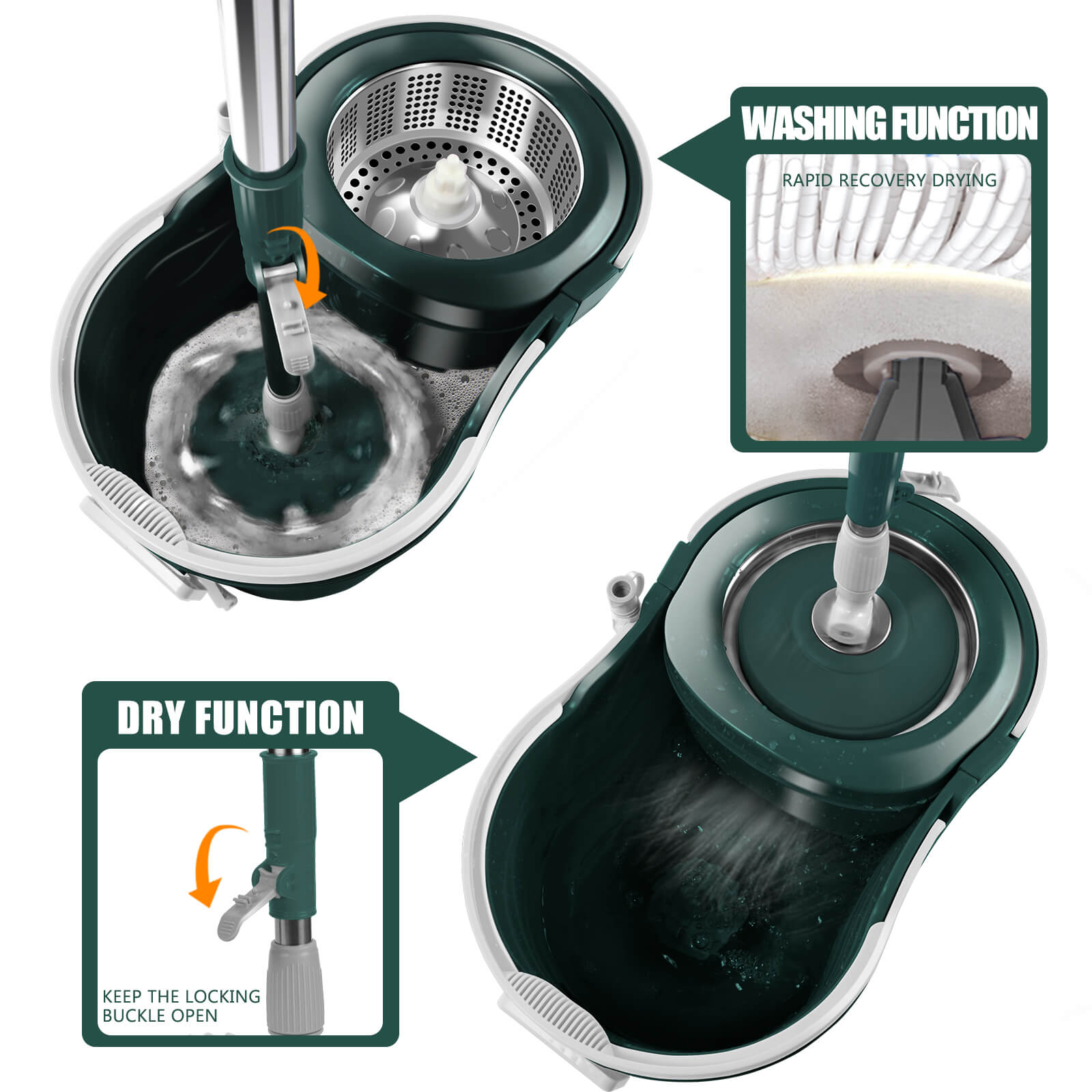 - Dual Spinners - Extra spinners are installed in the cleaning bucket section, which makes the mop clean faster and saves your time;