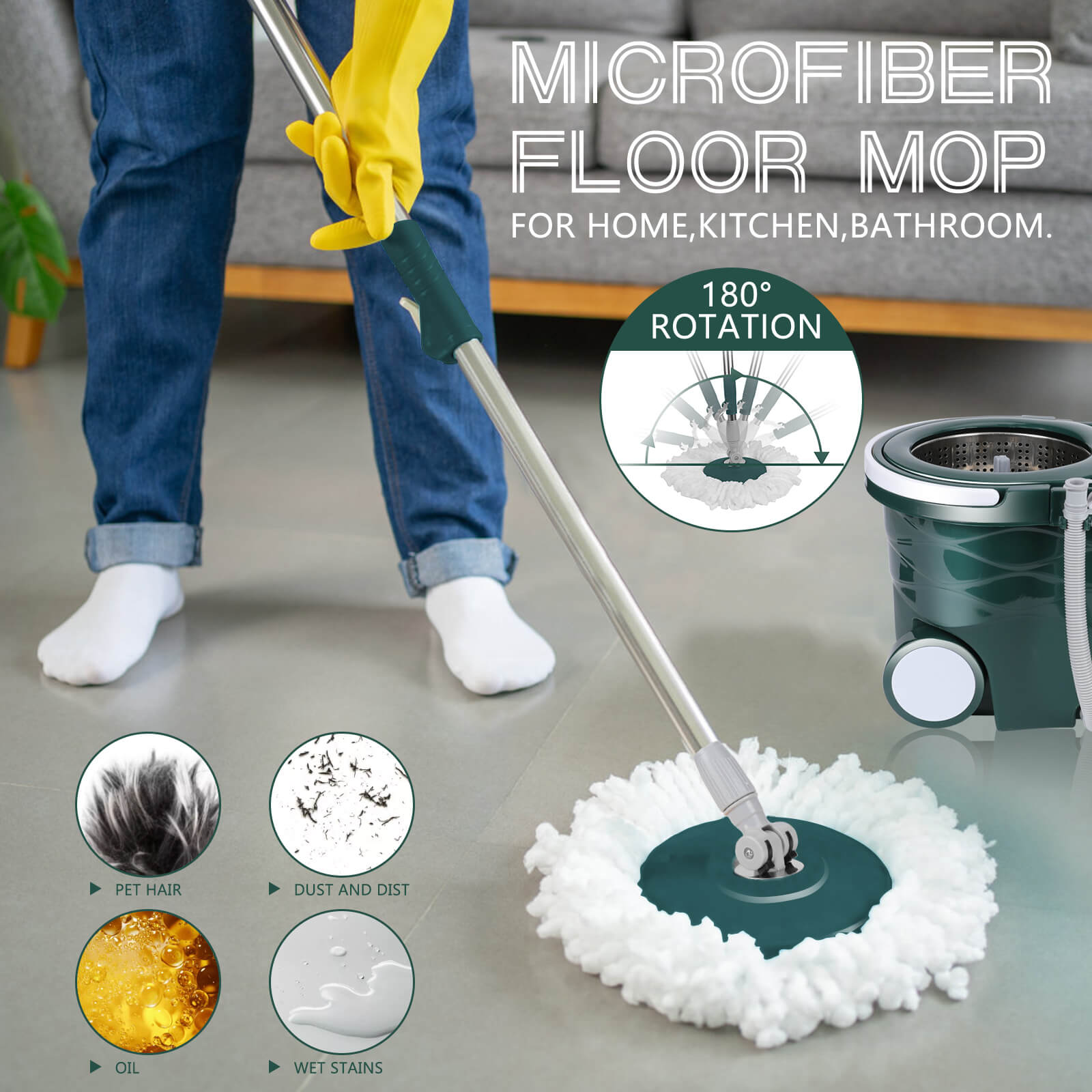 - 360° Rotating Mop Head - The flexible mop head easily reaches under furniture and other hard-to-reach areas, making cleaning easier;
